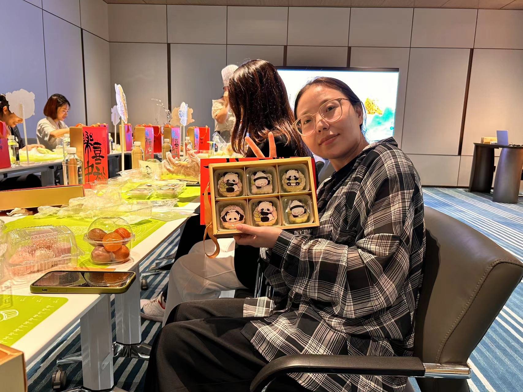 A variety of mooncake making tools and ingredients were available, and professional pastry chefs carefully explained the production process of mooncakes, from how to knead dough to make the dough more resilient, to how to wrap the filling to make the moon cake full and beautiful, to choose the right mold to press out beautiful patterns. Colleagues incarnated as "pastry masters" and devoted themselves to making mooncakes. Everyone while exchanging production experience, while helping each other, laughter and laughter echoed in the entire activity space, after the completion of the production, looking at their own hand to make a delicate moon cake, the heart is full of sense of achievement. These mooncakes are not only delicious cakes, but also the crystallization of everyone's joint efforts, carrying the warmth and friendship of the team.